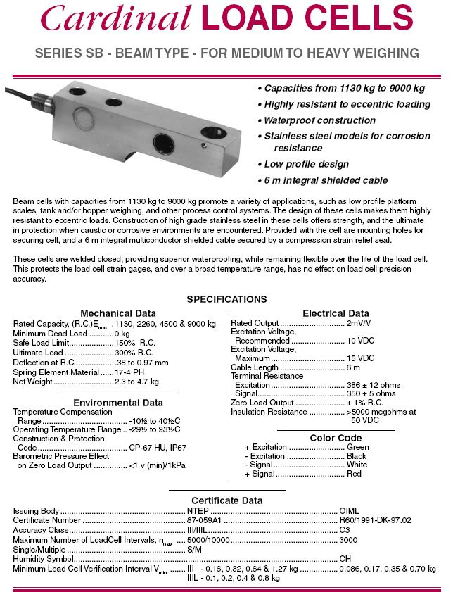 Cardinal SB 稱重傳感器 (load cells) :