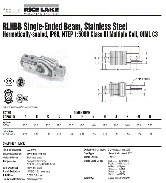產品名稱:RLHBB 波紋管稱重傳感器(load cells)