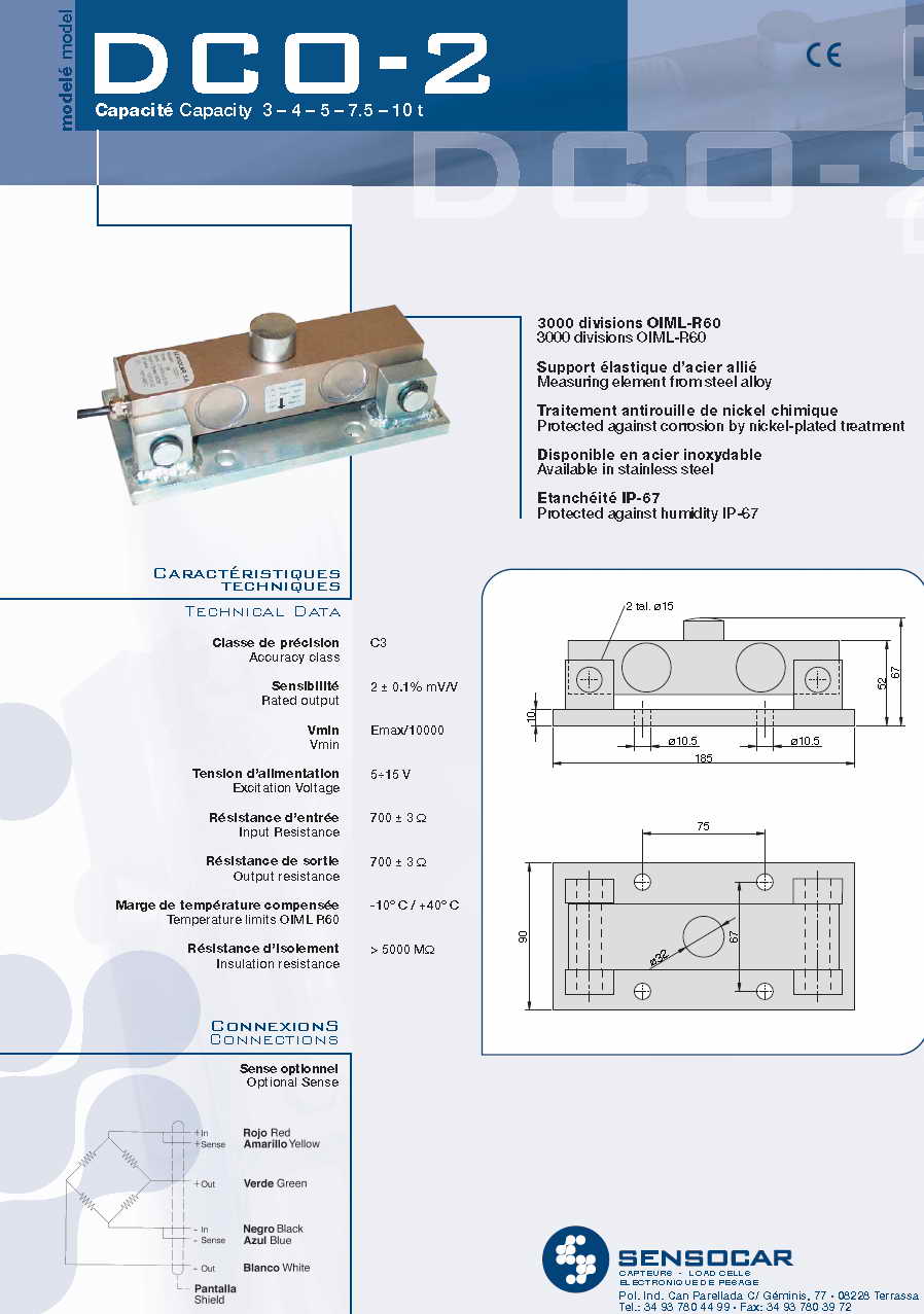Sensocar DCO-2 壓式稱重傳感器(load cells)