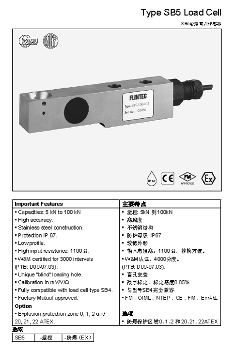 FLINTEC SB5 梁式稱重傳感器(load cells)