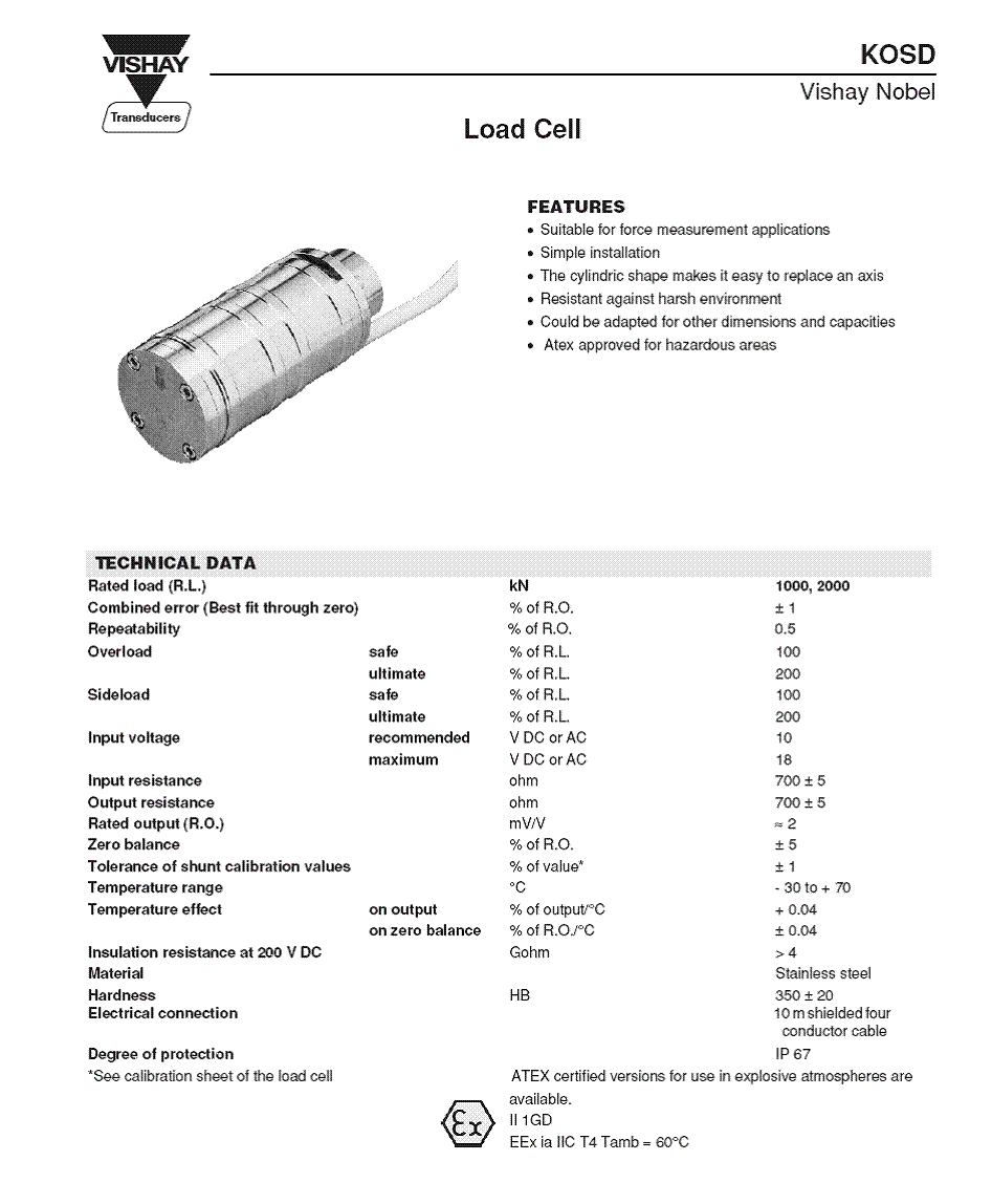 描述:KOSD - 40稱重傳感器具有堅固的外殼,適合在惡劣環境中測力過載保護應用。敏感元件包括三個部分,兩外部分構成支持,中間部分是負載傳感的一部分。KOSD - 40稱重傳感器可成為負載和一級監測模塊儲存,所以也可稱為KOM-1。