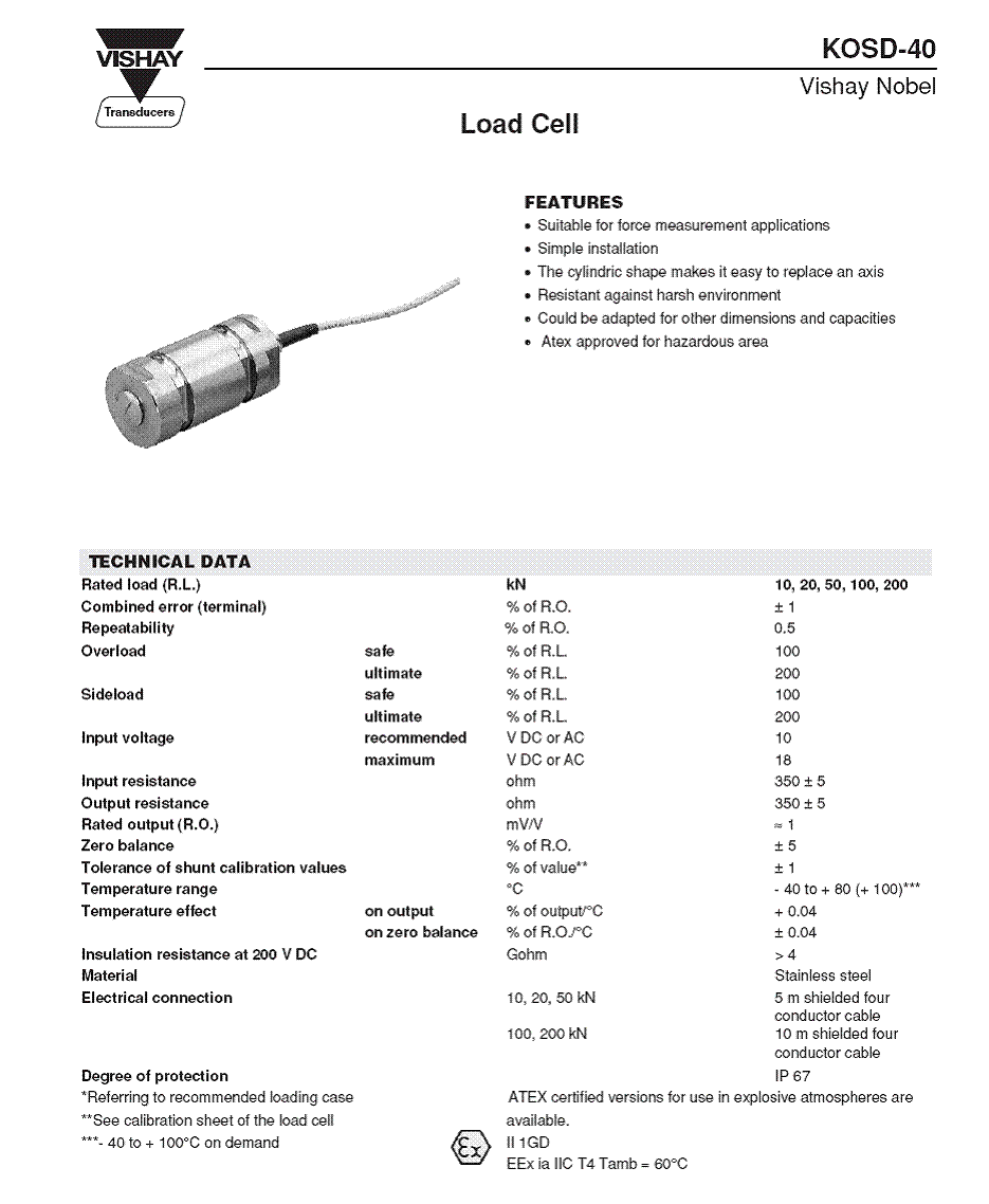| 產(chǎn)品名稱:KOSD-40 稱重傳感器(load cells) |