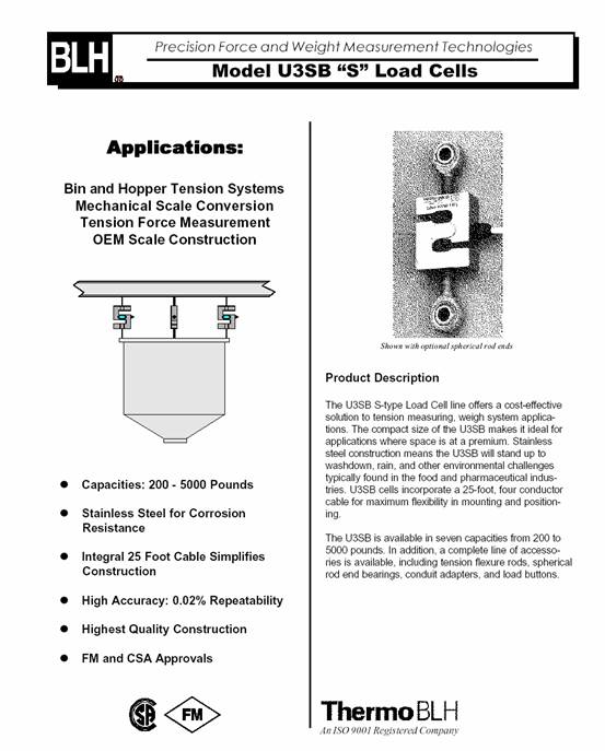 | 產(chǎn)品名稱:U3SB S型稱重傳感器(load cells) |