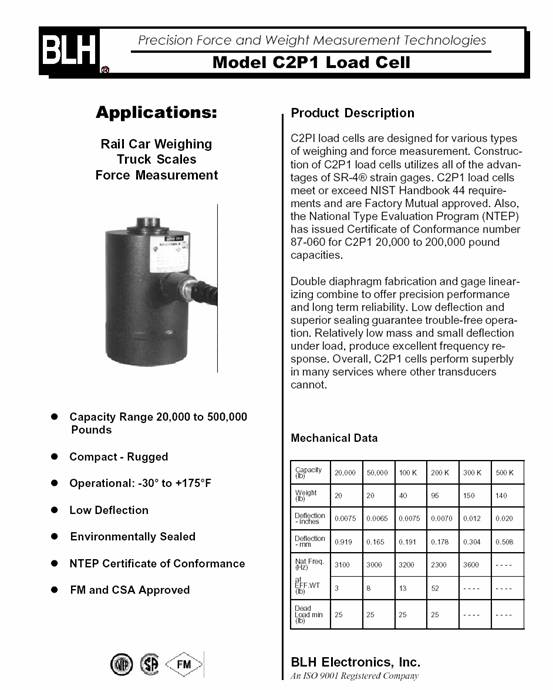 | 產(chǎn)品名稱:C2P1 稱重傳感器(load cells) |
