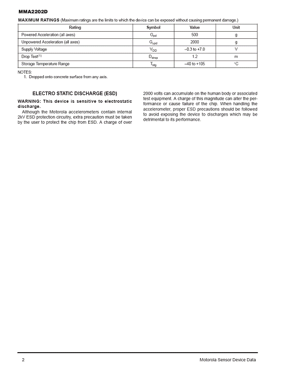 MMA2202D 加速度傳感器(Accelerometer)