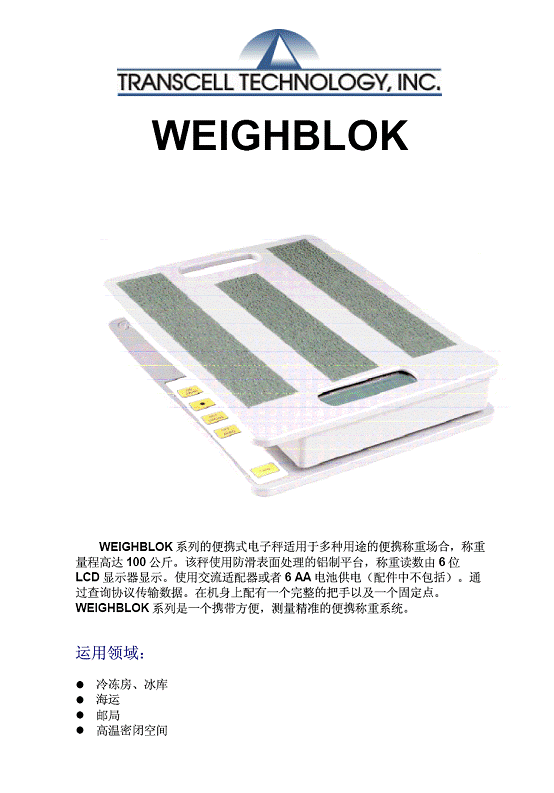 | 產(chǎn)品名稱:Transcell WEIGHBLOK系列 工業(yè)秤(scales) |