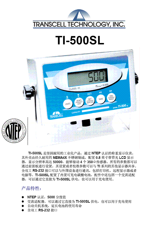 Transcell T1-500SL 耐用顯示儀表(Indicator)