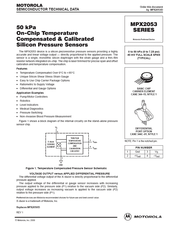 MPX2053 氣壓傳感器(sensor)